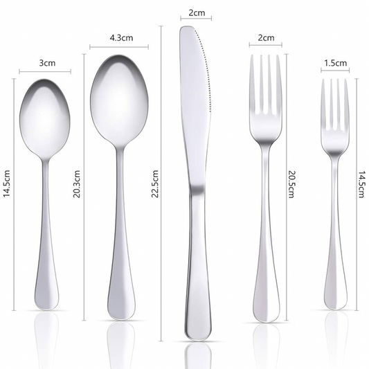 Lot de 24 couverts en acier inoxydable avec couteau, fourchette, cuillère, cuillère à café