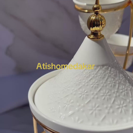 Apportez une touche de raffinement intemporel à vos moments de pause avec ce superbe service à thé blanc, sublimé par des finitions dorées d’une grande finesse.