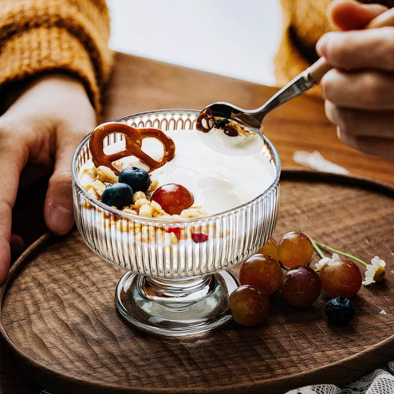Cette coupe peut être utilisée pour des desserts sucrés ainsi que pour des cocktails élégants à domicile.