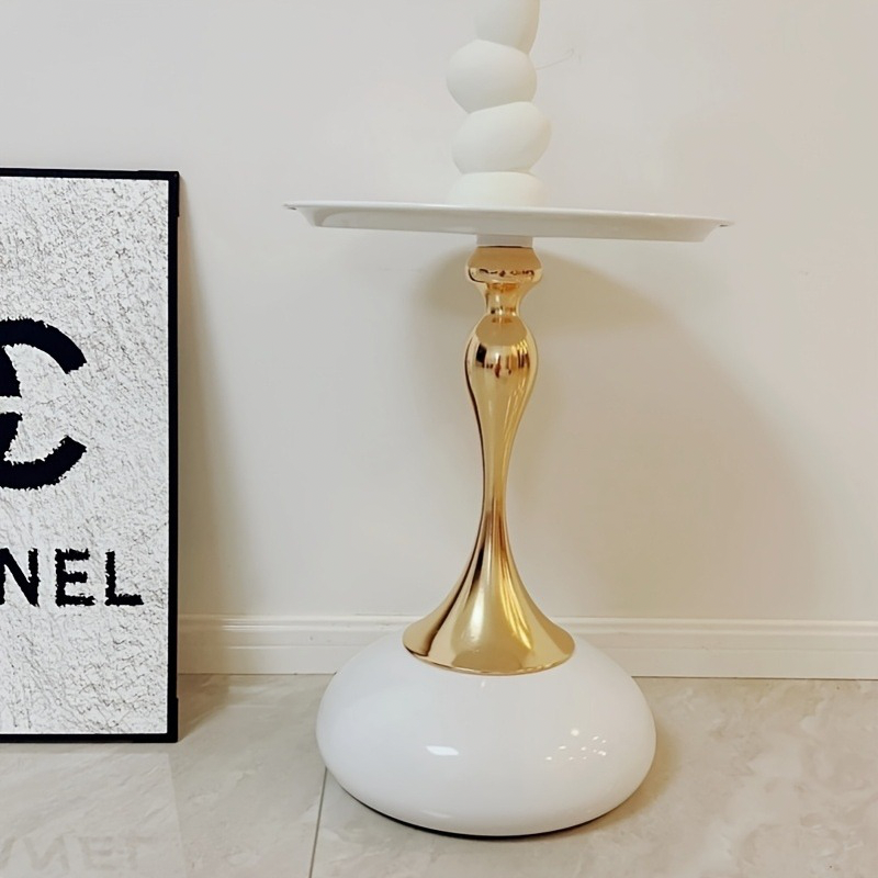 Table d'appoint-Table salon-Table ronde à piédestal en métal Blanc